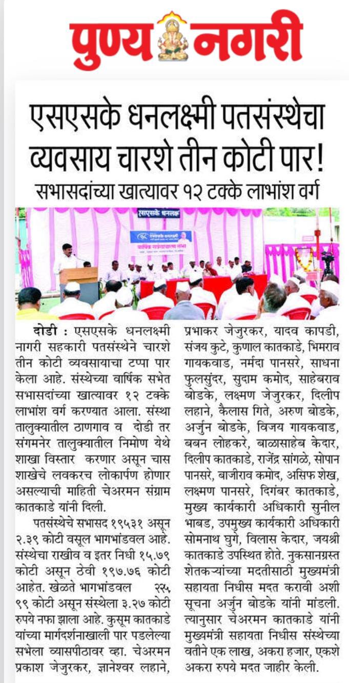 दै.पुण्यनगरी ३८ वी अधिमंडळाची वार्षिक सभा पेपर नोटीस