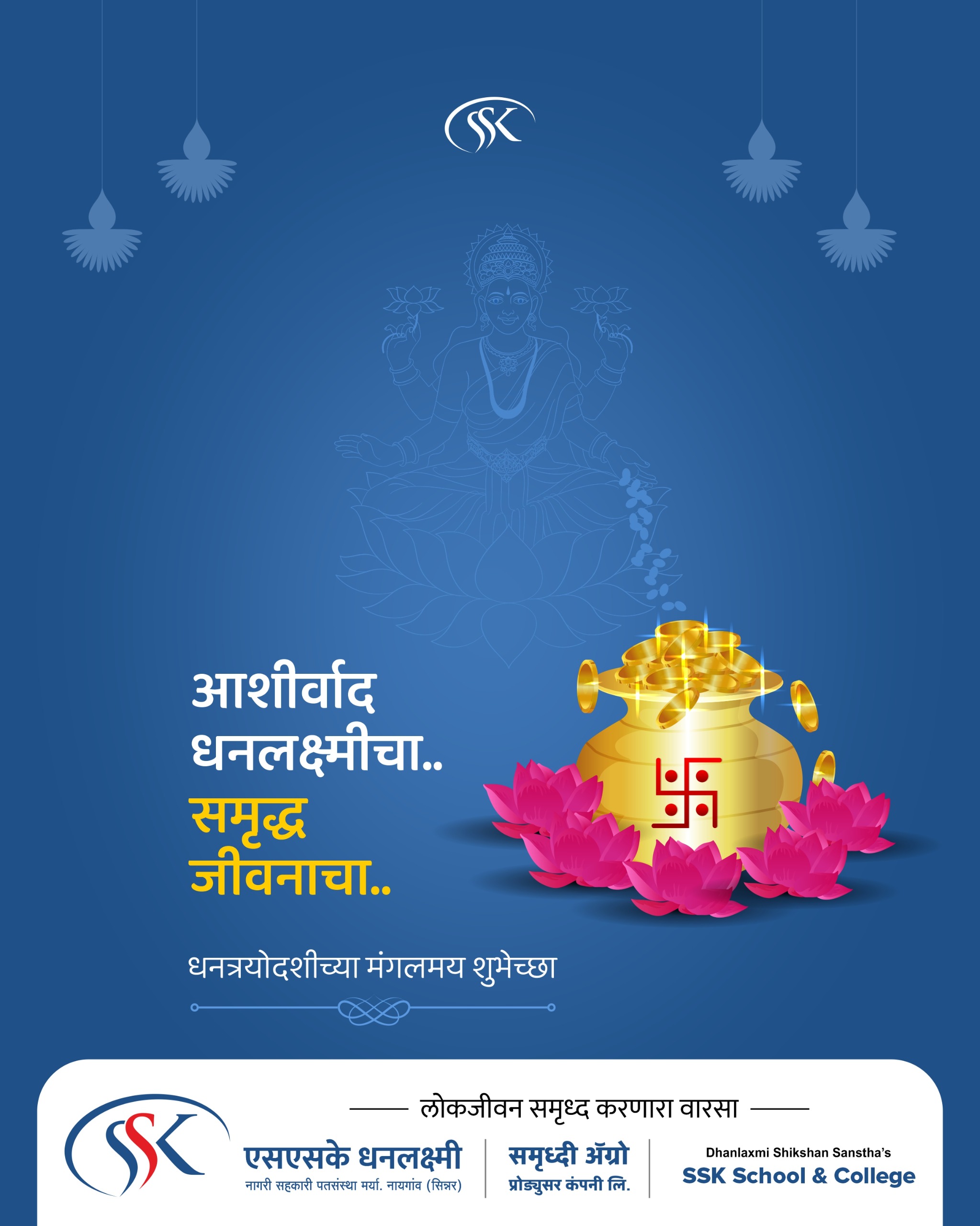 सर्व सभासद , ग्राहक व हिंतचिंतक यांन एसएसके धनलक्ष्मी परिवारातर्फे धनत्रयोदशी निमित्त हार्दिक शुभेच्छा !!!